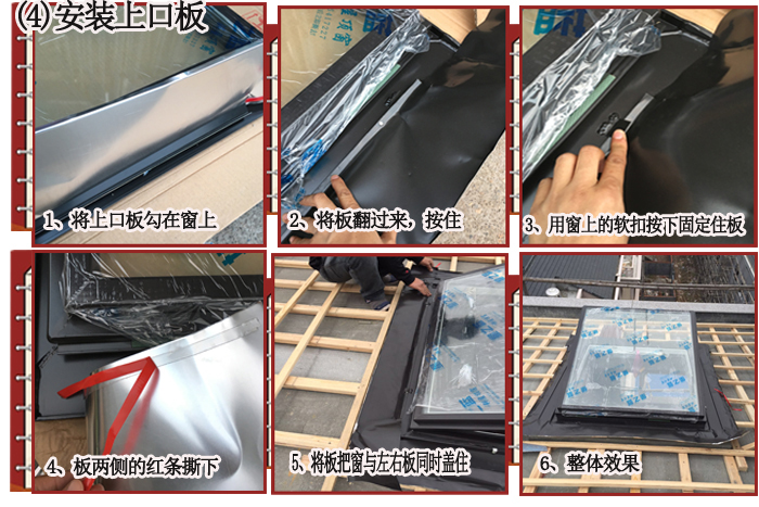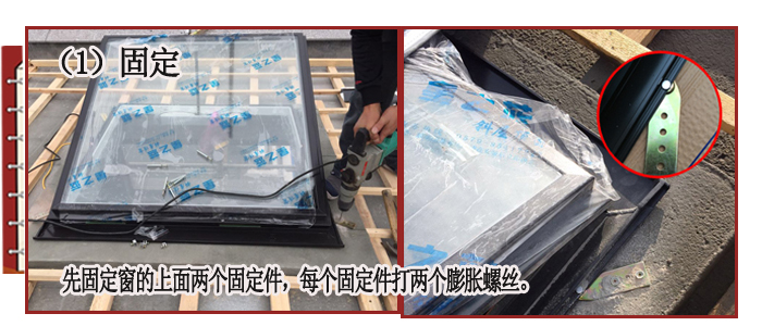 (1) 注意:先固定窗的上半部分,下面的两个固定件等下口板半月好后再固定。